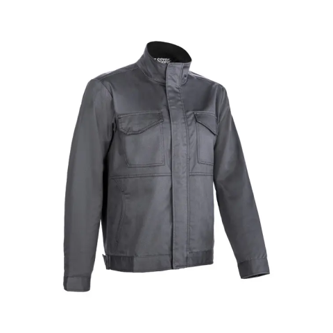 • 300 g/m2 vastag, 60% pamut + 40% poliészter kevertszálas alapanyag • egyenes szabású, vastag dzsekifazonú kabát, patenttal állítható mandzsettával és tépőzárral állítható derékkal • teljesen fémmentes, megerősített váll- és hátrész • állig érő húzózár,