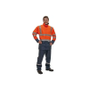 Fokozottan lélegző, víz és szélálló jólláthatósági védőkabát álló gallérral. Hő és lángálló, antisztatikus. Szakításnak ellenálló, lehegesztett varrásokkal. Cipzárral záródik. Háta hossza 85 cm (L).