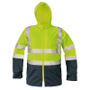 jólláthatósági kabát bélés nélkül lehegesztett varrások vízállóság Class 3 az EN343 szabvány szerint, átszivárgás Class 1 az EN343 szabvány szerint 3M fényvisszavető csíkok kapucni gallérba rejtve alsó szegélyben húzózsinórral