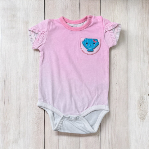 Kagylós pamut body Egyenes szabású, kerek nyakkivágású, ülepnél és vállnál patentos. Kellemes pamut anyag. Hibátlan állapotú.