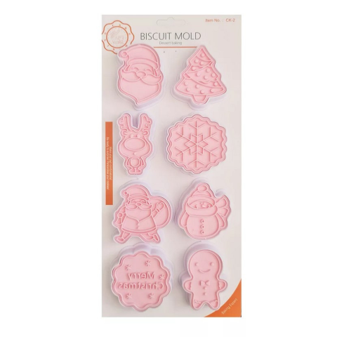 8 karácsonyi minta egy szettben, nyomdával díszítéshez. Könnyen használható, műanyag kialakítás, tökéletes ünnepi sütikhez