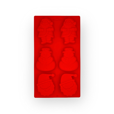 Karácsonyi sütőforma, szilikon, 16×28cm- II A Karácsonyi szilikon sütőforma tökéletes választás az ünnepi süteményekhez. A 16×25 cm-es forma három vidám karácsonyi motívummal rendelkezik: Mikulás (5,5×9 cm), hóember (6,5×8 cm), és Mikulásfej (6×7,5 cm)