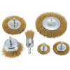 A 6 részes ELLIX kefekészlet kezdők számára ideális alapfelszereltség fém, acél és faanyagok rozsdamentesítéséhez, lakktalanításához és tisztításához. Ez a készlet egy ecsetkefét, egy-egy 37 mm, 50 mm, 75 mm, 100 mm átmérőjű drótkorongot és egy 60 mm átmérőjű fazékkefét tartalmaz. Valamennyi kefe rendelkezik egy nyéllel, amely tokmányadapterként lehetővé teszi fúrógépekkel történő használatukat.