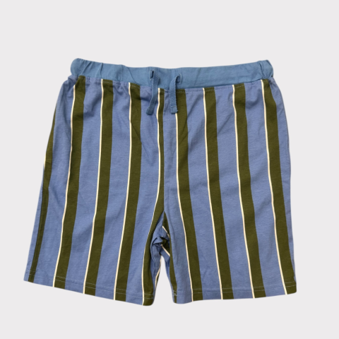 Kék&zöld csíkos pizsama nadrág Egyenes szabású, dereka gumis és kötős. Kellemes organikus pamut anyag. Hibátlan állapotú.