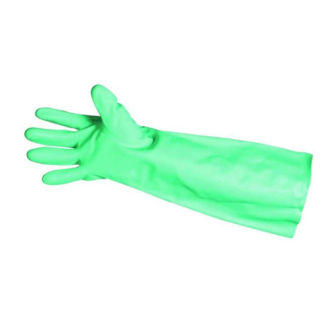 0,56 mm vastag nitrilből készült zöld antisztatikus kesztyű textúrált tenyér és ujjfelülettel. Teljes hossza: 45,5 cm.