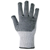 5. osztályú vágásállóságú, módosított üvegszálból, Spandexből és nylonból kötött, varratmentes kesztyű PVC-vel pontozott tenyérrel és ujjakkal.