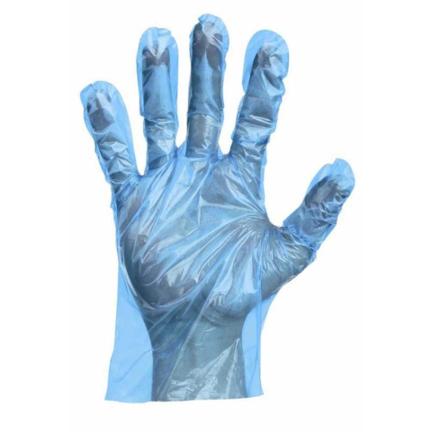 Élelmiszerekkel való rövid idejű érintkezésre alkalmas, polietilén fóliából készült, egyszer használatos kesztyű.