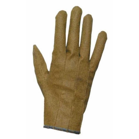 Kötött pamutkelméből varrt, vinil bevonatú bézs kesztyű.
