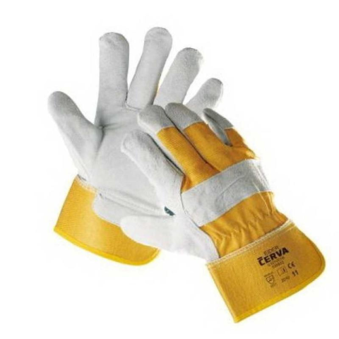 Kombinált védőkesztyű vastag marha hasított bőrbőlbélelt tenyérrelpamut kézfejteljesbőr hüvelyk és mutatóujjkörömvédő