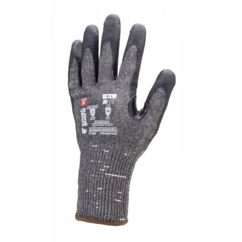 maximális szakítás- és kopásállóságú, a legmagasabb F szintű TDM vágásbiztossággal, 13-as kötésű, kényelmes, multiszálas (HPPE, poliészter és spandex alapanyagú) fekete védőkesztyűtenyerén csúszásbiztos fekete mikrohabosított nitril mártásnitril megerősítés a mutató- és hüvelykujj közöttérintőképernyőhöz is alkalmazható, kényelem és magas szintű fogásbiztossággumírozott mandzsetta, szellőző hátrészEN 388: 2016 4x43F