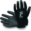 Kötött PES kesztyű PU mártott tenyérrel, rugalmas mandzsettával.