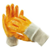 Pamutkelméből varrott védőkesztyű, nitrillel ökölcsontig mártott, rugalmas kötött mandzsettával.