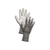 Kötött vágásbiztos védőkesztyű, 5-ös vágásbiztonsággal. Spandex/üvegszál-nylon alapanyag, tenyéren PU mártással, rugalmas mandzsettával.