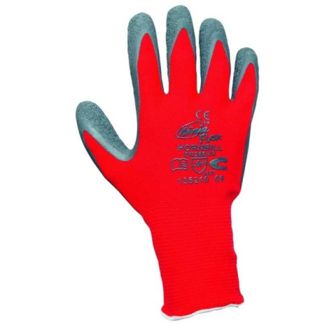 Kötött, varratmentes nylon kesztyű (15GG) rugalmas gumibevonatú tenyérrel és ujjakkal, valamint rugalmas mandzsettával.