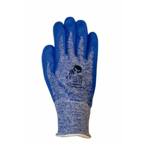 Varratmentes kötött nylon kesztyű nagyfokú olajlepergető képességet biztosító nitrilréteggel a tenyéren és az ujjakon.
