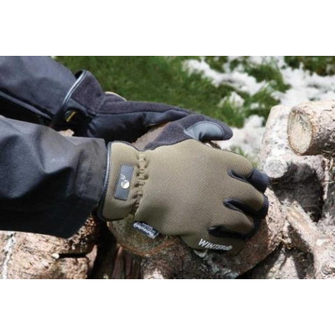 Nedvesség ellen védő, jó minőségű műbőr tenyerű és ujjú, valamint nylon és Spandex kézhátú kesztyű polár béléssel, 3M Thinsulate meleg közbéléssel (100 g/m?), valamint hüvelykujj és mutatóujj közötti erősítéssel.