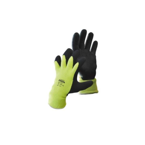 Téliesített kötött védőkesztyű, szintetikus fonalak, mikropórusos és páraáteresztő latex réteggel tenyéren és az ujjakon. Rugalmas kötött mandzsetta.