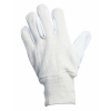Finom színkecskebőrből varrt tenyerű és fehér pamutszövet kézhátú kesztyű kötött mandzsettával.