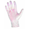 Nem zsíros élelmiszerekkel való rövid idejű érintkezésre alkalmas, egyszer használatos, púderezett vinil kesztyű.