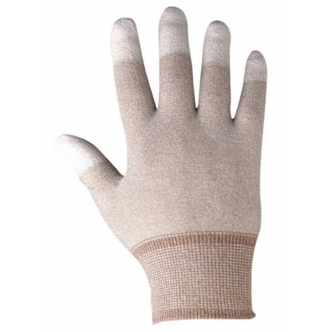 Kötött, varratmentes, antisztatikus nylon kesztyű integrált szénszállal, poliuretán bevonatú ujjhegyekkel és rugalmas mandzsettával.