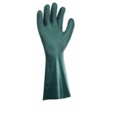 Varrott pamut kesztyű, nitril/PVC-be mártott, véd a mechanikus és vegyi veszélyek ellen, merev 11 cm-es PVC mandzsetta, AS érdesített tenyér.