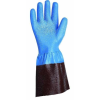 Varrott pamut kesztyű, nitril/PVC-be mártott, véd a mechan kus és vegyi veszélyek ellen, merev 11 cm-es PVC mandzsetta.