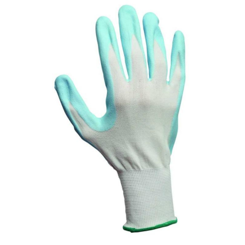 Kötött, varratmentes nylon kesztyű mikroporózus, páraáteresztő nitril bevonatú tenyérrel és ujjakkal, valamint rugalmas kötött mandzsettával.