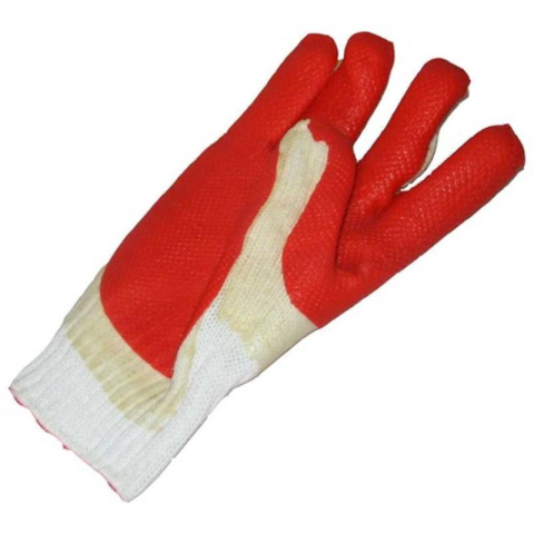 Erős poliészter/pamut kevertszálas kötött, latexbe mártott kesztyű további erős latexréteggel a tenyéren és az ujjakon, valamint rugalmas kötött mandzsettával.