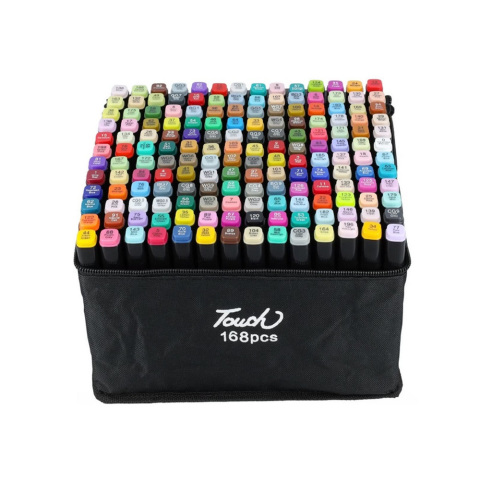ALKOHOLOS MARKER KÉSZLET, KÉT VÉGŰ 168 KLF.SZÍN 168 db kétvégű, alkoholos marker. Víz - és fakulásálló erősen pigmentált színek, melyek nem hagynak nyomot. Hegyvastagság: 3 mm és 6 mm. Vonalvastagság: 0,5 mm - 6 mm. A tok anyaga rugalmas, zipzárral és