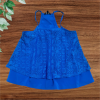 Királykék, pántos felső Bővülő szabású, pántja állítható, csipke hatású. Hibátlan állapotú.
