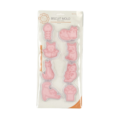 Kiszúró szett nyomdával, műanyag, cica, 8db Ez a termék egy 8 darabos cica formájú kiszúró és nyomda készlet, amelyet könnyen használhat cukrászati termékek készítésére és díszítésére. A kiszúrók műanyagból készültek. A készlet segítségével könnyedén k