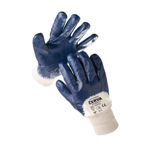 KITTIWAKE mártott nitril kesztyű - 10 • ökölcsontig nitrilbe mártott kék védőkesztyű pamut kesztyűalapon, rugalmas mandzsettával