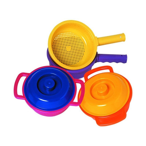 Korosztály: 3 - 6 év 8 darabos konyhai játék készlet, eszközökkel, 12 cm-es edénykkel.A konyhai főzőszett lábas, serpenyő, fedő találhatóak. Erőteljes, feltűnő színvilágával magára vonja a gyermekek figyelmét. A készletnek köszönhetően a kicsik is igazi szakácsnak érezhetik magukat. Vonjuk be őket is a világába, engedjük a konyhába csemetéinket, készítsük e