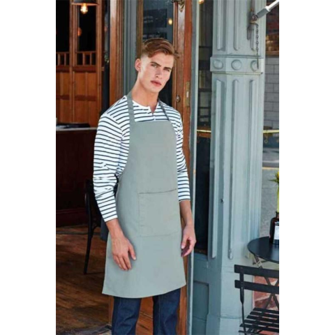 Fabric65% Polyester 35% Cotton twillFeaturesBib Apron with pocket and combined pen pocketAvailable in 40 coloursSelf fabric neck band and 90cm self fabric tiesSliding adjusting buckle