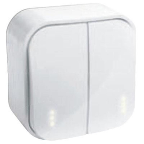 Kétbillentyűs kapcsoló, amely egy fogyasztói csoport megosztott kapcsolására, ill. két különálló helyiség egy helyről történő fel-és lekapcsolására alkalmas. LED-lámpa segítségével a kapcsoló jelzőfényessé tehető a billentyű cseréje nélkül.