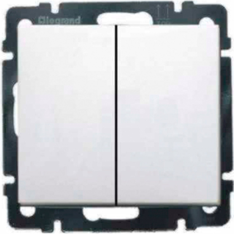 Kétbillentyűs kapcsolóbetét csillárhoz, amely egy fogyasztói csoport megosztott kapcsolására, ill. két különálló helyiség egy helyről történő fel-és lekapcsolására alkalmas. A süllyesztett kivitelben készült kapcsolóbetét IP20 védelemmel rendelkezik. Fehér színben kapható.