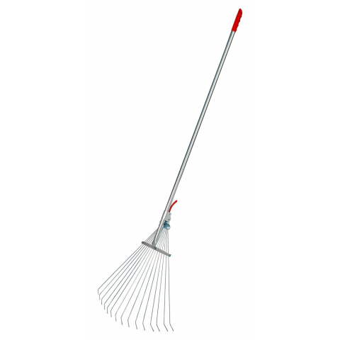 Az állítható lombseprű a lenyírt fű vagy a lehullott levelek eltávolítására alkalmas a kertben. 15 fém foggal rendelkezik, amelyek lefelé meg vannak hajlítva, és rugalmasak, ezáltal kímélik a talajt. Az integrált állítási lehetőségnek köszönhetően a munkaszélesség 19 és 56 cm között fokozatmentesen rögzíthető. A lombseprű fémből készült teleszkópos nyéllel van ellátva, melynek hossza 117 és 157 cm között állítható, ezért magas emberek számára is
