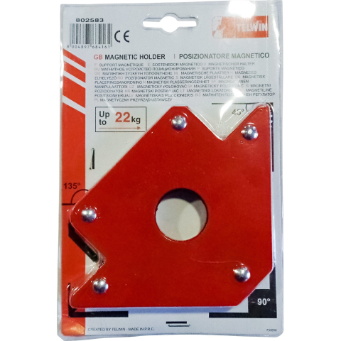 Az erős mágnesek helyzetben tartják a szög alatt kötendő munkadarabokat hegesztésnél, forrasztásnál, egyéb fémszereléseknél. Piros színű pozicionáló tartó mágnes.