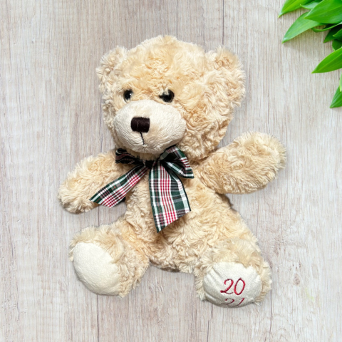 Pihe puha plüss mackó kockás masnival a nyakában. Méret:30cm Hibátlan állapotú.