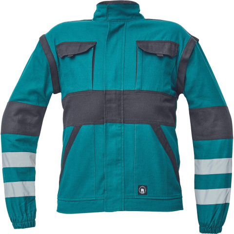 MAX NEO RFLX munkáskabát jellemzői: Férfi cipzáras munkakabát levehető újakkal Anyag: 100% pamut, anyagvastagság: 260 g/m2 2 első zseb, 2 mellzseb Megerősítés a váll és könyök részeken Rugalmas mandzsetta és alsó derékszegély Fényvisszavető csíkok az u