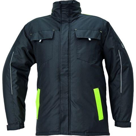 Állógalléros télikabát Tökéletes választás a hideg téli hónapokra, kiváló védelmet nyújt a hideg időjárás ellen. A poliészter bélésének köszönhetően és a praktikus kialakítása, ideális választássá teszi a legkeményebb környezetben történő munkavégzéshez.