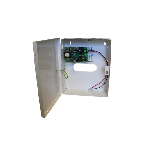 Szünetmentesített intelligens tápegység, bemeneti feszültség 230 Vac, kimeneti feszültség 12~13,8 Vdc, max. össesített kimeneti áram (kimenet + akkumulátortöltés) 4 A, akkumulátorhely 12V 7Ah, hibajelző LED-ek és kimenet, max. 30 vdc / 0,1 A, UPS és PS ü