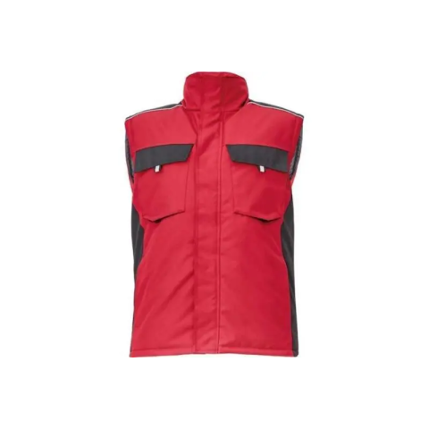 férfi téli mellény; tépőzáras takarópánttal fedett cipzár; 2 oldalsó zseb, 2 mellzseb; 1 belső mobiltelefonzseb; fényvisszavető szegés