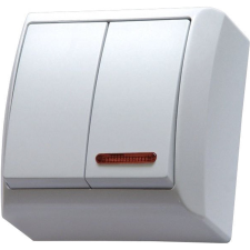A két billentyűből álló csillárkapcsoló egy fogyasztói csoport megosztott kapcsolására, ill. két különálló helyiség egy helyről történő fel- és lekapcsolására alkalmas. A rugós bekötésű, falon kívüli kivitelben készült kapcsoló IP20 védelemmel rendelkezik.