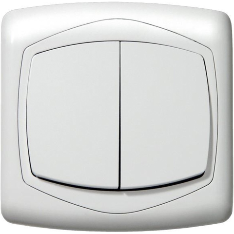 Kétbillentyűs csillárkapcsoló, amely egy fogyasztói csoport megosztott kapcsolására, ill. két különálló helyiség egy helyről történő fel- és lekapcsolására alkalmas. A süllyesztett kivitelben készült, rugós bekötésű kapcsoló IP20 védelemmel rendelkezik.