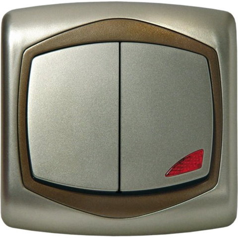 Kétbillentyűs csillárkapcsoló, amely egy fogyasztói csoport megosztott kapcsolására, ill. két különálló helyiség egy helyről történő fel- és lekapcsolására alkalmas. A süllyesztett kivitelben készült, rugós bekötésű kapcsoló IP20 védelemmel rendelkezik.