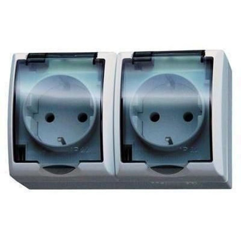 A dupla dugalj egy vagy több fogyasztó csatlakoztatására alkalmas földelt aljzaton keresztül. IP44 védelemmel és csapfedéllel rendelkezik, csavaros bekötésű. Elhelyezése: korlátlan. Névleges feszültsége: 250 V. Névleges áram: 16 A.
