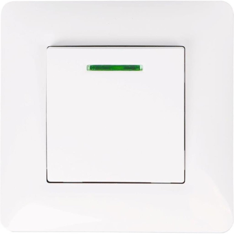Az egypólusú kapcsoló egy lámpa, egy helyről történő kapcsolására alkalmas. Süllyesztett kivitelben készült. A billentyűre helyezett jelzőfény segítségével a kapcsoló sötétben is könnyen megtalálható.