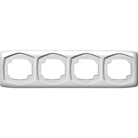 Szerelvények sorolásához alkalmazható vízszintes keret süllyesztett, 4-es kivitelben. IP20 védelemmel rendelkezik. Fehér színben kapható. Anyaga: műanyag.