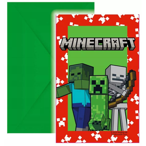 Minecraft meghívó 6 db-os Tartalma: 6 db meghívó + 6 db boríték Anyaga: papír FSC (Forest Stewardship Council)